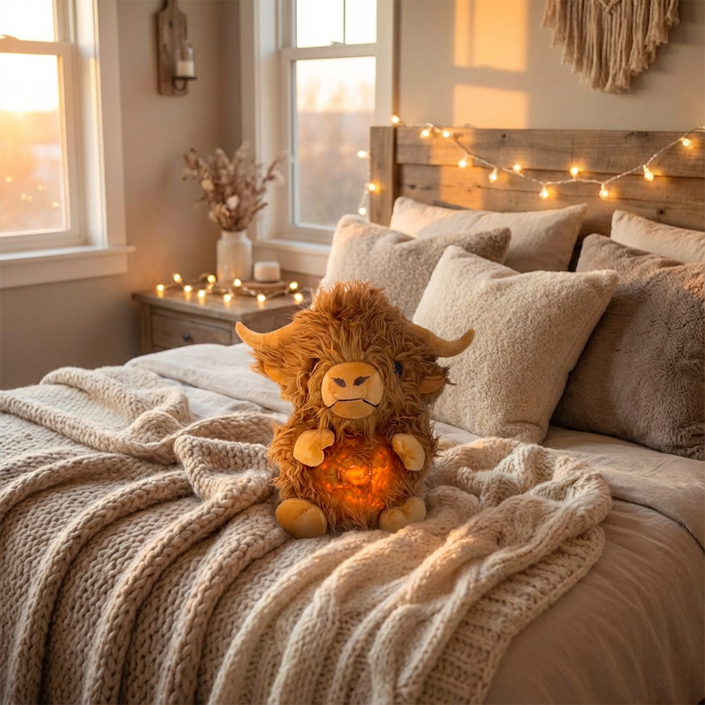 Inside the plush is a quiet, rhythmic mechanism that gently expands and contracts to mimic calm, natural breathing. You can feel it through the plush — it’s subtle, soothing, and designed to match the ideal relaxation breathing pace.
